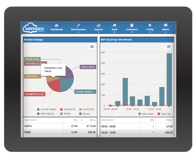Monitor staff sales performance against increases profitability. Intelligent reporting provides average spend per operator, tracks sales performance i.e. monitor starter or dessert sales.