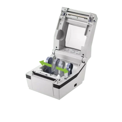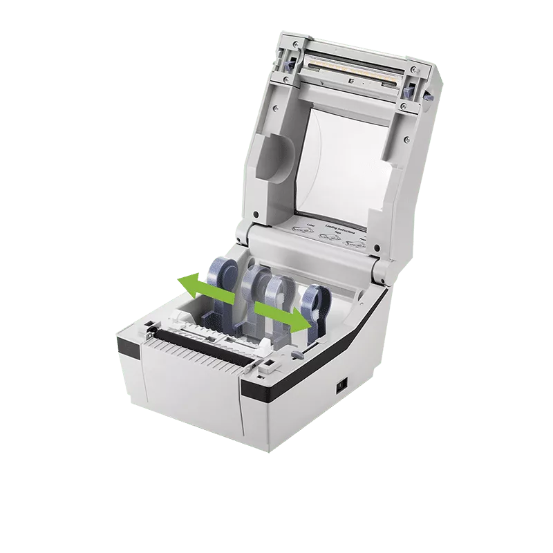 Supporting a compact, ergonomic design featuring easy media loading with adjustable paper guide between 1.5~4.2 inches. For use in barcode and receipting applications with the added bonus of printing on fanfold label media.